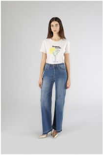 Jeans modello gina dalla vestibilità wide leg. passanti per cintura chiusura con cerniera e bottone cinque tasche. realizzati in tela superstrech. versateli e confortevoli sono perfetti per qualsiasi look.