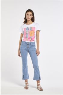 Jeans virna modello cropped flare in tela superstretch con abbottonatura a vista