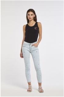 Jenas brigittte modello skinny in tela stretch elegante applicazione di strass alle gambe.