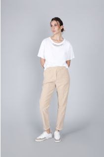 Pantaloni jogger in tencel tinto capo dalla linea casual e relaxed. vita elasticata e gamba dritta per il massimo comfort. perfetto per look quotidiani versatili. la modella è alta 173 cm e indossa la taglia s.