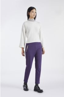 Pantaloni jogging in tessuto elesticizzato. Le impunture due aghi sono con filato a contrasto e donano al capo un tocco sportivo.