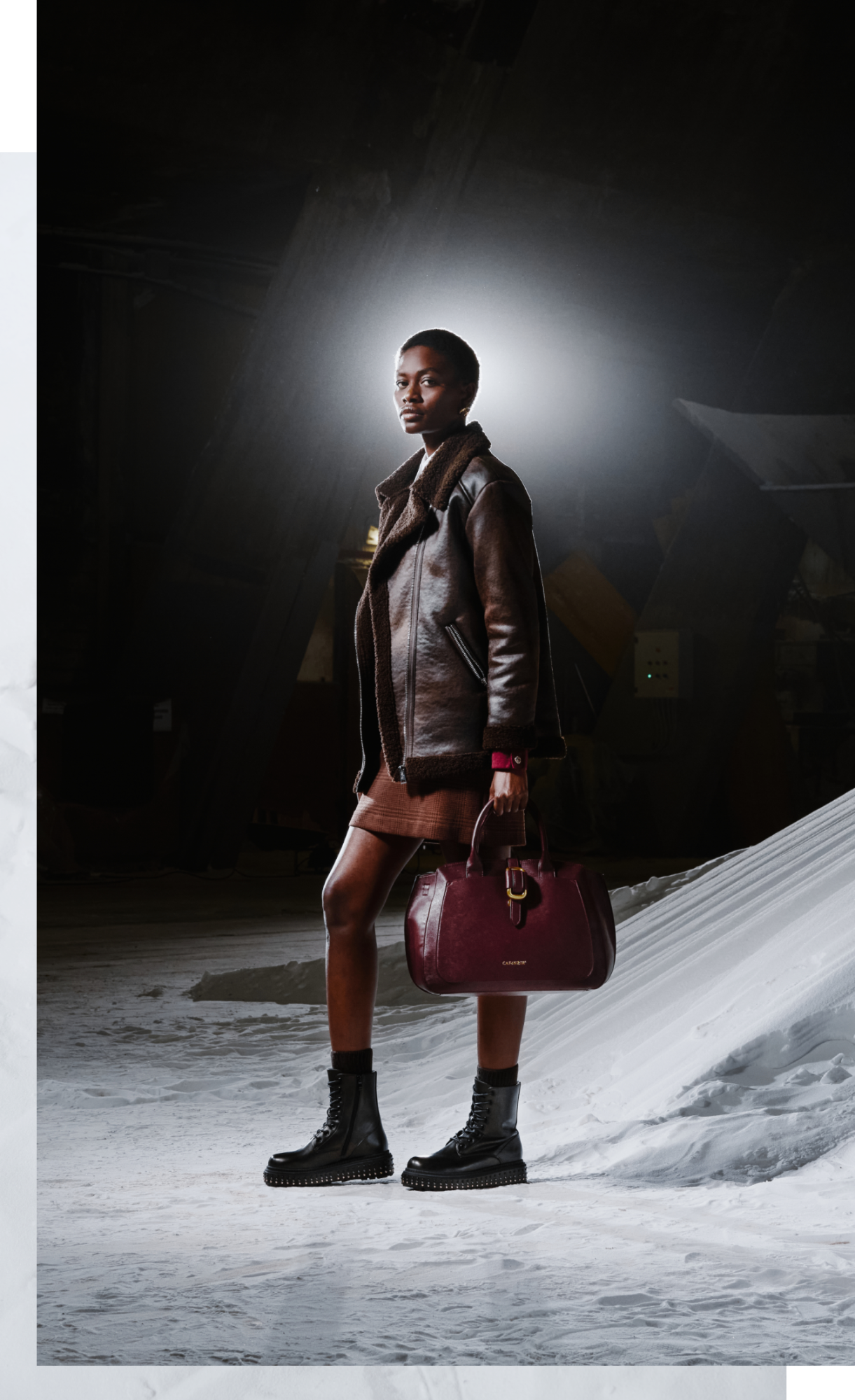 Accessori scuri e texture animalier danno carattere a ogni outfit. Un mix di forza e femminilità che trasforma la semplicità in potenza, per affrontare la stagione con sicurezza e fascino.