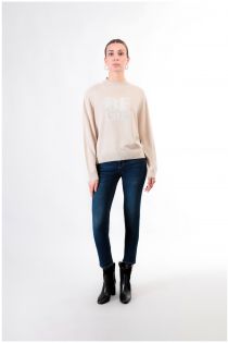 Maglia cropped con collo a ciclista in caldo e morbido filato mistolana. punto maglia rasato e lavorazione jacquard per il nostro slogan "be noir" impreziosito da strass sapientemente applicati. disponibile in una variante bicolor molto di tendenza e di due varianti colore in tinta unita.