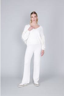 Maglia con scollatura a "v" e motivo di frange sul davanti realizzato in un caldo filato mistoviscosa. perfetto per un look casual e confortevole fitting regular. la modella è alta 174cm e indossa la taglia s.