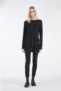 Maglia con scollo barca in filato misto cachemire con dettagli a contrasto lurex e retro più lungo