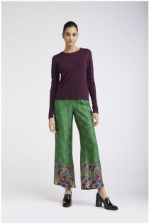 Maglia girocollo e maniche lunghe realizzata in filato misto cachemire. delicato motivo di traforo sul davanti che riproduce anche il nostro logo.