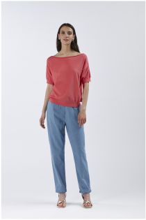 Maglia con scollatura a barca e maniche corte in filato misto viscosa. perfetta per chi ama uno stile essenziale e linee pulite.