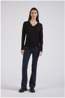Maglia scollo a "v" a maniche lunghe realizzata in un filato lana viscosa.