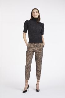 Elegante maglione collo alto e maniche corte a sbuffo realizzato in un mix di filati caldi