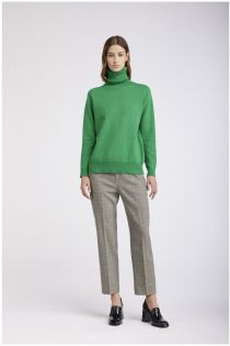 Maglione con collo alto realizzato in filato mistolana. delicato motivo a traforato.