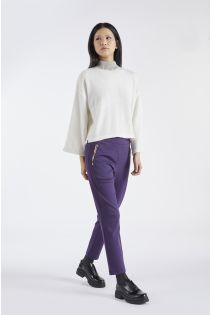 Caldo ed avvolgente maglione ampio con maniche svasate e con colletto alto realizzato in filato misto angora e lurex.