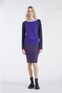 Caldo ed avvolgente maglione girocollo con un mix di colori e di filati