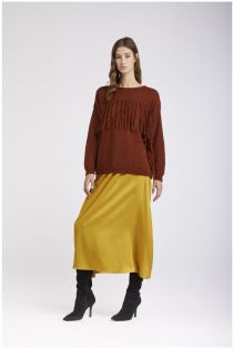 maglione mistoalpaca con frange alle maniche e davanti tabacco