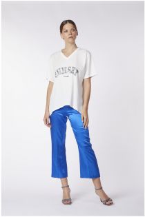 Maxy t-shirt in jersey di cotone 100% con una vistosa scritta sunset in pailettes.