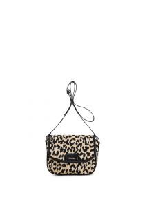 Mini bag con pattina in tessuto maculato e con bordura imbottita da portare a tracolla
