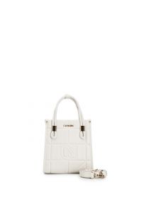 Mini tote con lavorazione a rilievo con effetto trapunta a motivo geometrico. manici tubolari e dettagli dorati. chiusura con pattina e calamita. borsa dotata di tracolla.