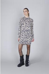 Miniabito con cappuccio in filato misto lana stampato caldo e morbidissimo. perfetto per un look casual e grintoso nei mesi freddi. vestibilità regular. la modella è alta 173 cm e indossa la taglia s.