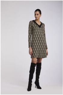 miniabito scollo a "v" lavorazione jacquard geometrico sabbia