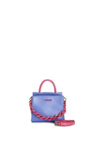 minibag bicolore con manico, doppia tasca, catena decorativa e tracollina indaco