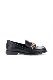 Mocassini nero con morsetto in metallo realizzato in similpelle effetto pelle. soletto in pelle e tacco basso da 2 cm. eleganti e versatili per look raffinati.