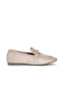 mocassini donna in pelle intrecciata con morsetto multi beige