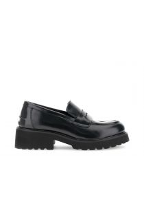 Mocassini da donna in pelle abrasivata con suola chunky. fodera e soletto in pelle per un comfort superiore. tacco di 4,5 cm. eleganza e grinta per ogni look urbano.