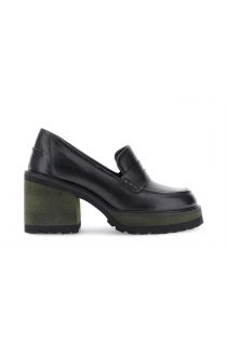 Mocassini in pelle nera con tacco alto 9 cm. fodera e soletto in pelle per un comfort superiore. stile grintoso e versatile per look urban chic.