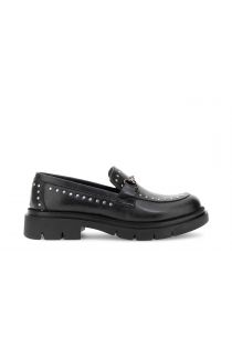Mocassini in pelle con morsetto e borchie decorative. design grintoso e femminile suola carrarmato e tacco alto 3,5 cm. fodera e soletto in pelle. eleganza e carattere ogni giorno.