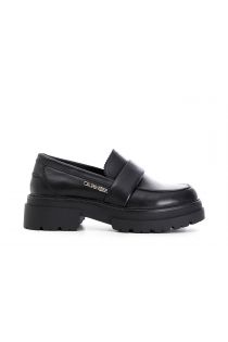 Mocassini in pelle con passante imbottito e logo metallico laterale