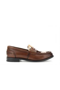 mocassini in pelle con riporto in pelle effetto cavallino cognac