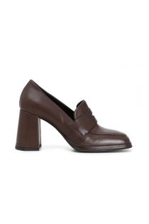Mocassini in pelle con tacco medio con punta dalla forma quadrata in contrasto colore.