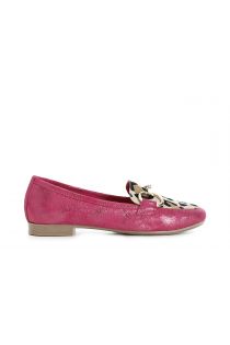 mocassini in pelle glitter e pelle scamosciata in stampa animalier fuxia