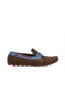 Mocassini uomo in pelle scamosciata con passante e riporti a contrasto. suola con dots in gomma. calzatura leggera e versatile da abbinare a svariati look. assicura una calzata confortevole per tutto il giorno.