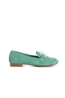 mocassini in suede monocolore con catena decorativa trasparente verde