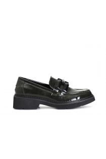 Mocassino da donna in similpelle effetto vernice arricchito da morsetto sul passante. il soletto è in pelle.