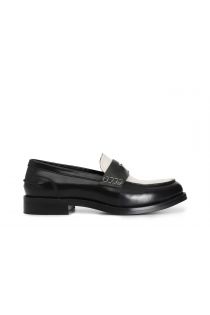 Mocassino da donna in pelle abrasivata multicolore con accessorio moneta. fodera e soletto sono in pelle. tacco alto 25 mm.