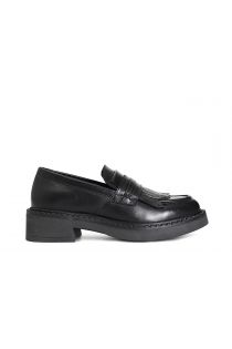 Mocassino da donna in pelle con frangia. tacco alto 50 mm. il soletto è in pelle.