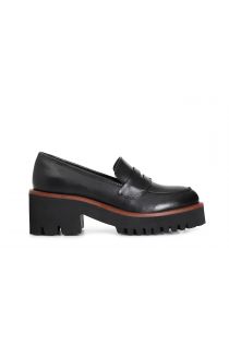 Mocassino da donna in pelle con suola nera e guardolo colorato. suola a carro armato alto 60 mm e plateau di 30 mm. la fodera e il soletto sono in pelle.