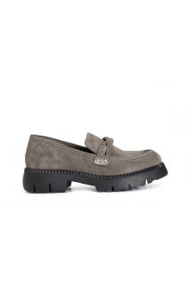 Mocassino da donna in pelle scamosciata con mignon. fodera e soletto sono in pelle. plateau alto 25 mm. tacco da 40 mm.