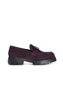 mocassino da donna in pelle scamosciata con morsetto bordeaux