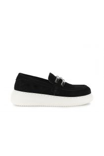 mocassino da donna in pelle scamosciata con morsetto suola a cassetta nero