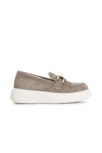 mocassino da donna in pelle scamosciata con morsetto suola a cassetta taupe