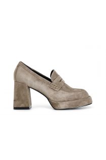 Mocassino da donna in camoscio con tacco 80mm e plateau 20mm. il soletto è in pelle. comodità ed eleganza allo stesso tempo ed un carattere unico adatto ad ogni outfit.
