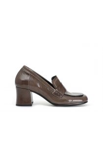 Mocassino da donna in vernice con cucitura ornamentale sulla tomaia. il gusto molto chic ti permette di indossarlo con qualsiasi abbigliamento per ogni occasione giornaliera o serale. la punta e il tacco sono squadrati.