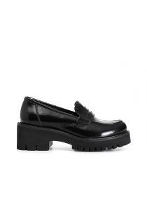 Mocassino donna in vernice con tacco alto 55mm. il soletto è in pelle. questa calzatura è perfetta per essere alla moda senza rinunciare alla comodità.