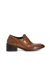 Mocassino da donna in pelle arricchito da borchie sul toppone. altezza tacco 50mm. il soletto è in pelle.