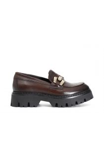 Mocassino da donna in pelle arricchito da un morsetto sul passante. il soletto è in pelle. modello versatile e dinamico ideale per completare moltissimi outfit.