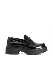 Mocassino da donna in similpelle spazzolata arricchito da un grazioso ed originale riporto di strass. il soletto è in pelle