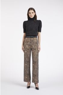 Elegante pantalone palazzo a vita alta realizzato in un prezioso tessuto jacquard con cinturino di raso