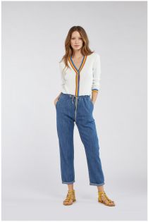 Pantaloni pratici e confortevoli dal gusto leggermente sportivo con coulisse in vita. Realizzato in una morbida tela chambray